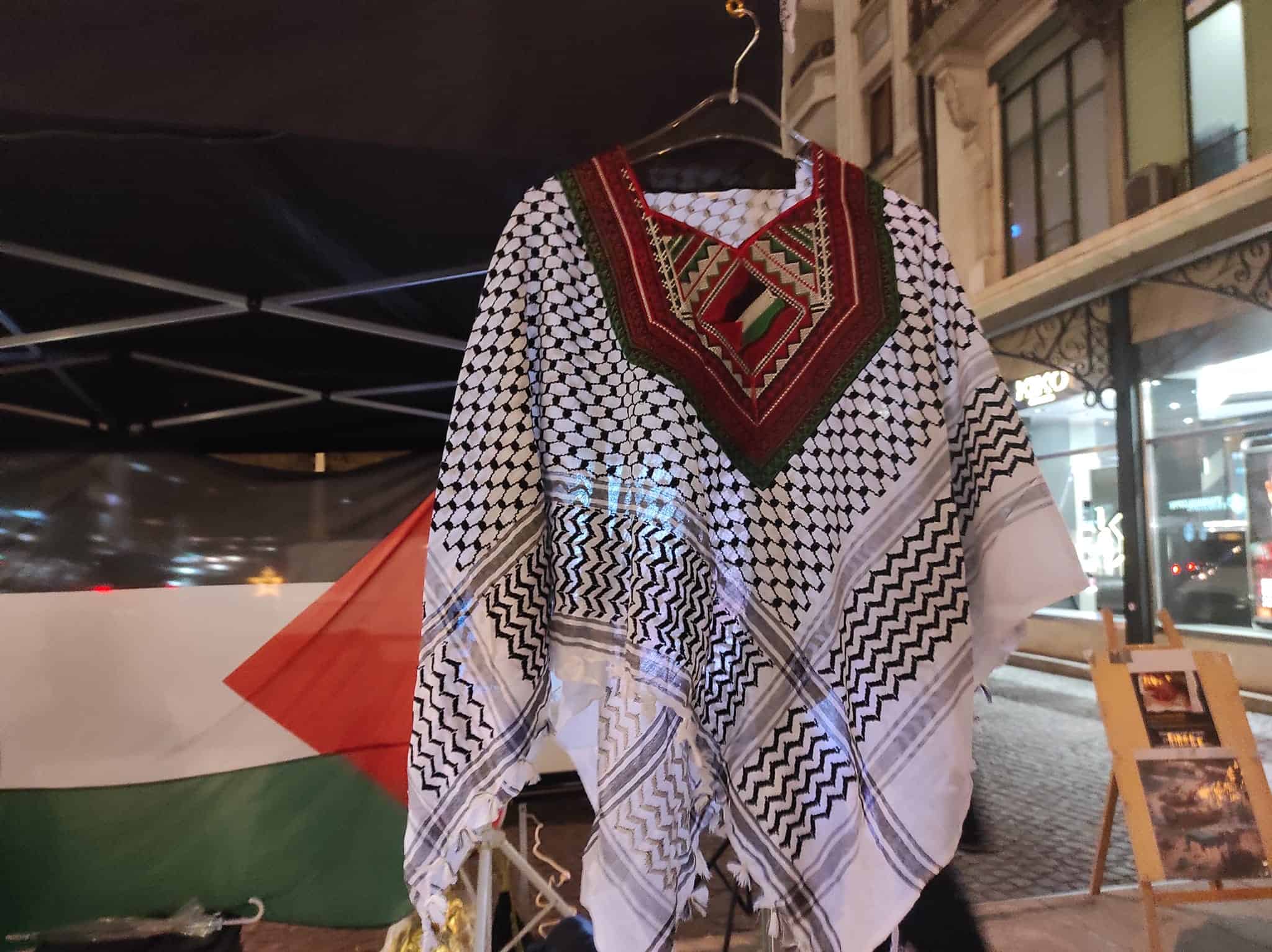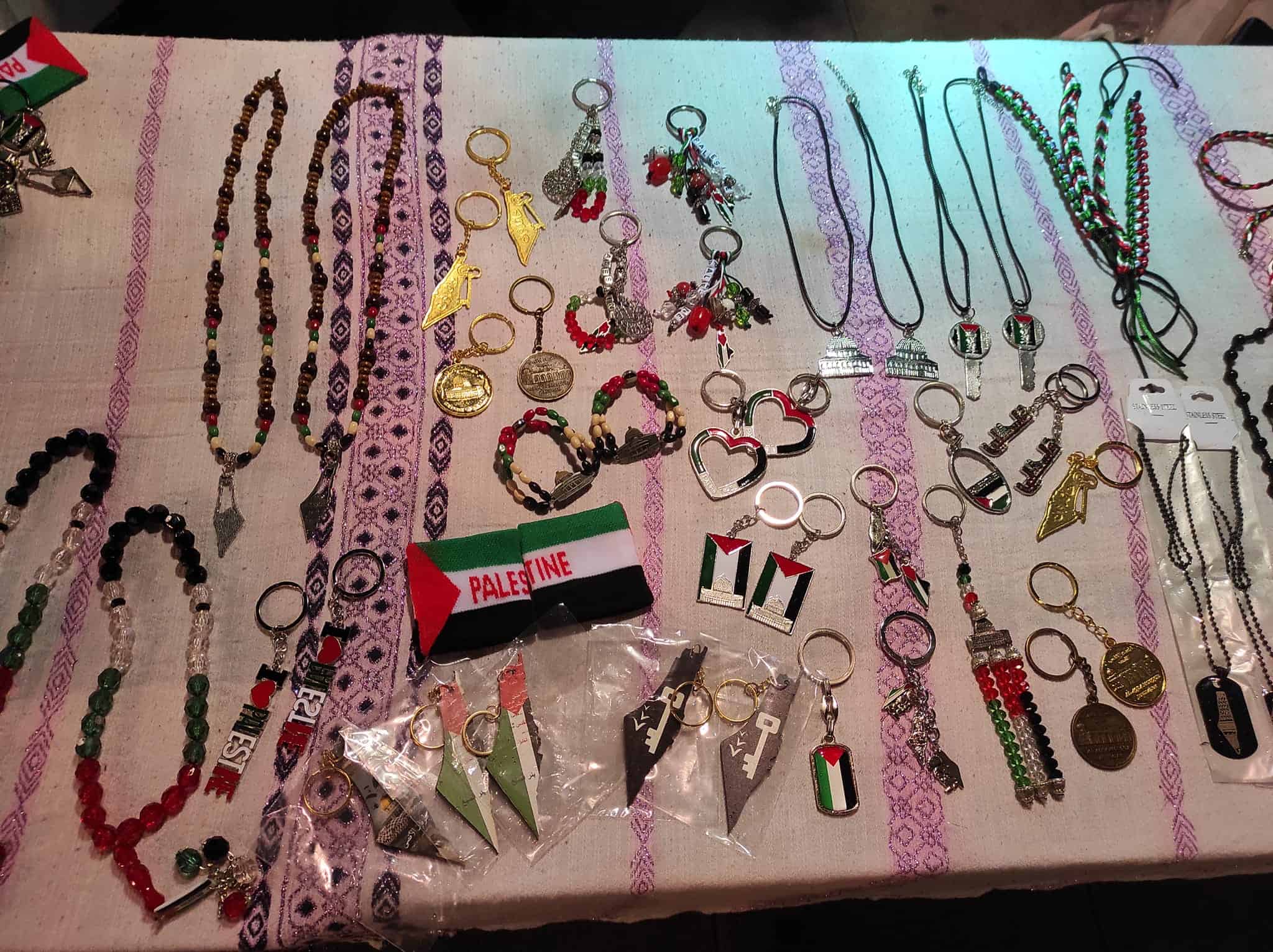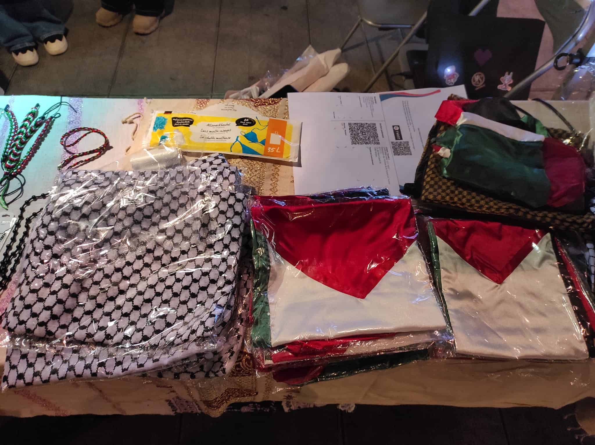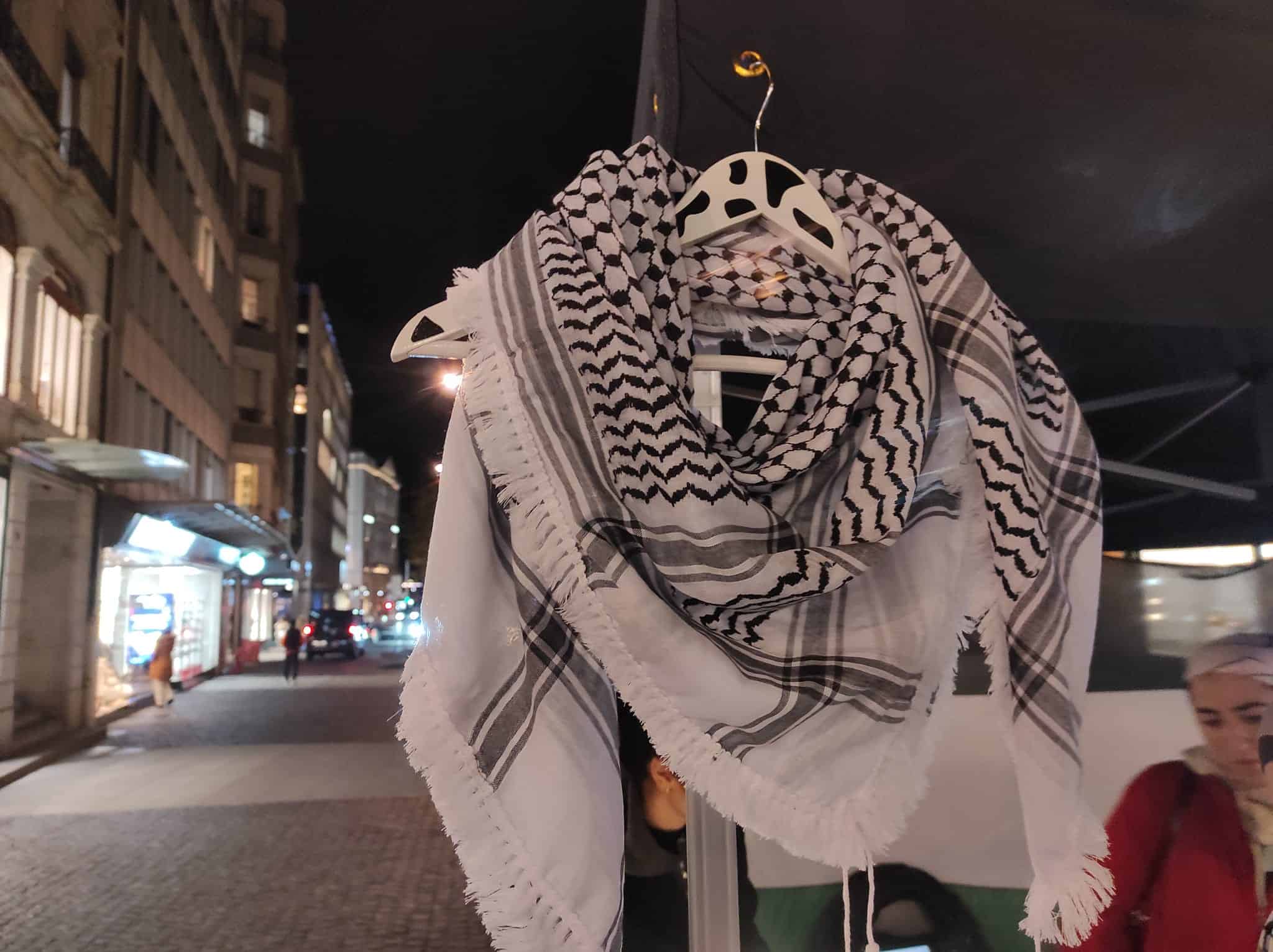Keffiyeh, Pins, Drapeau, etc …. Disponible sur place