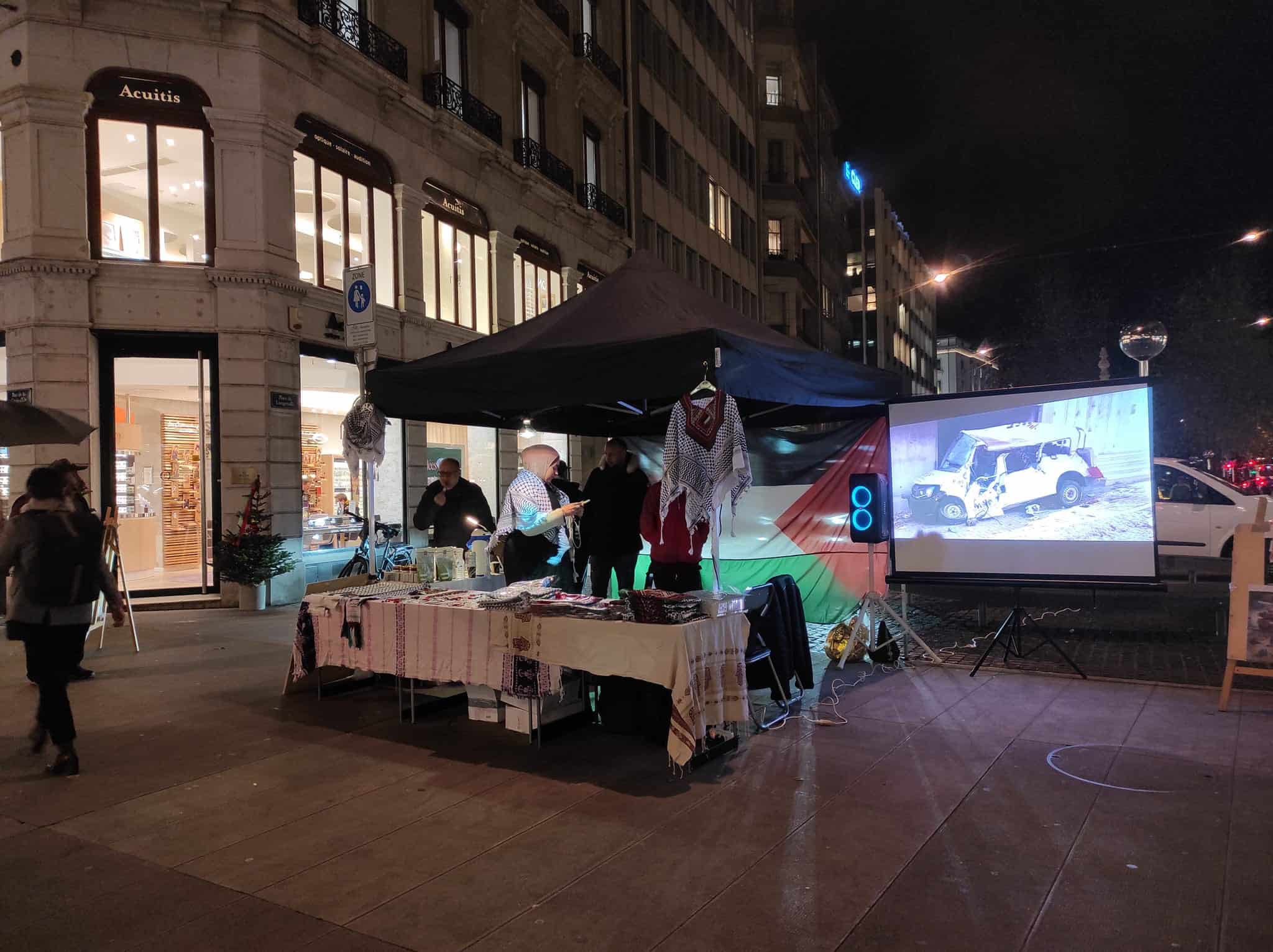 Un Stand d’information et de sensibilisation pour la Palestine 🇵🇸 À la place de Longemalle ( Genève)