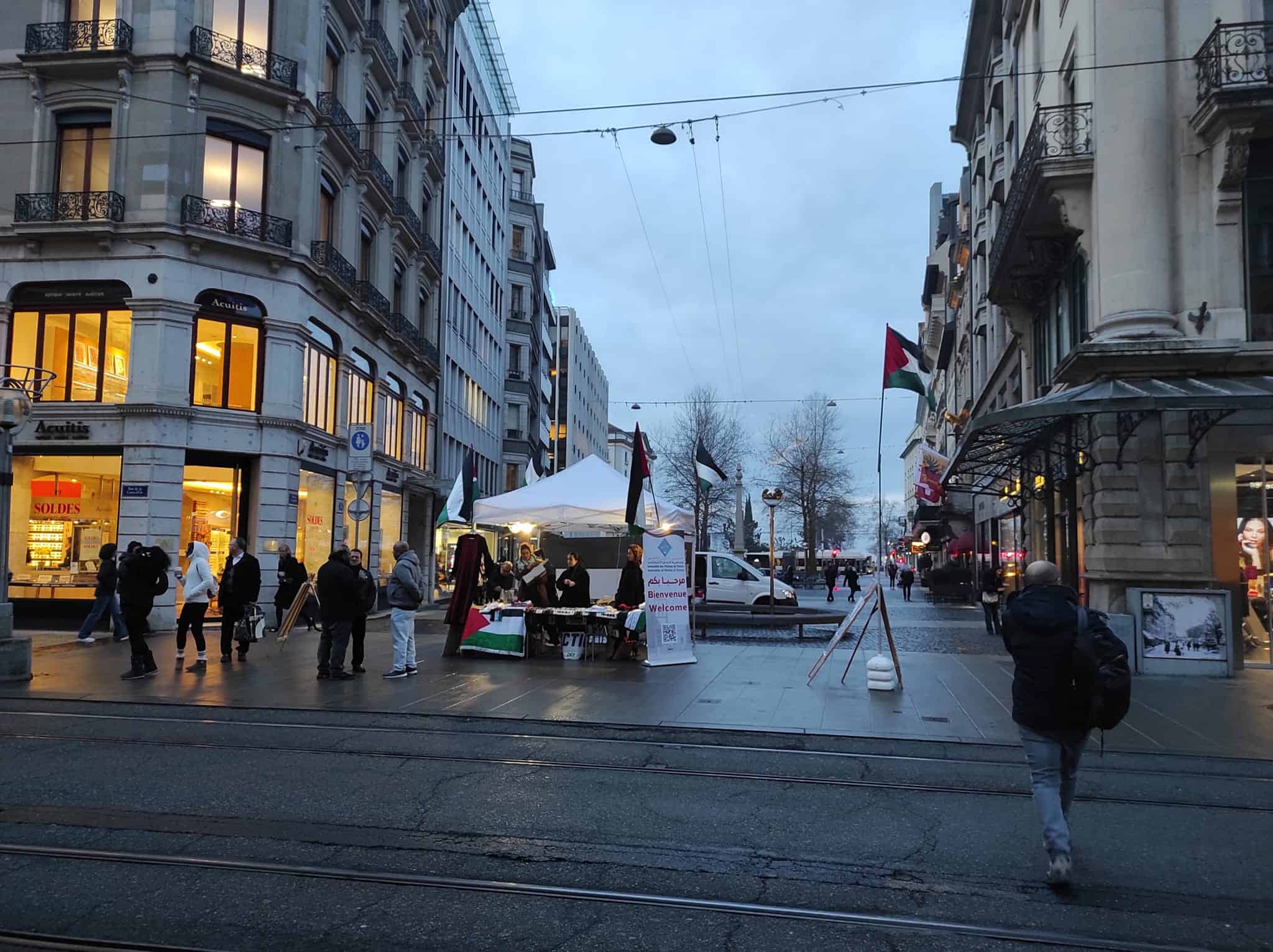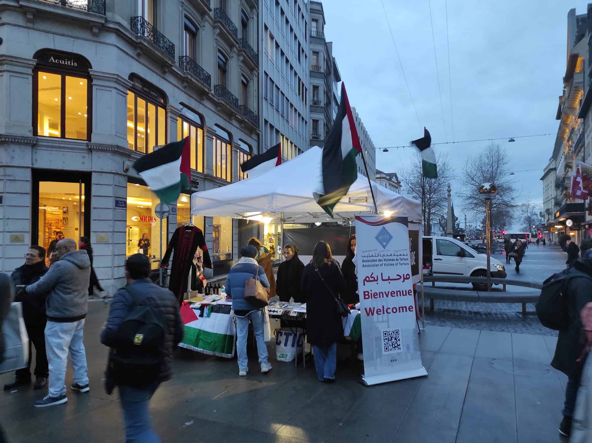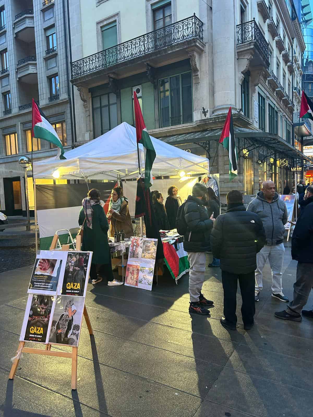 🇵🇸 Semaine 15 Accomplie – Une fois de plus, après 14 semaines de persévérance, notre stand d’information et de sensibilisation pour la Palestine à la Place des Nations, Genève, demeure une flamme d’espoir. Depuis le 26 octobre, nous résistons.